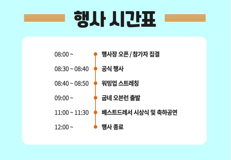 - 하지만 부상자가 대회 당일 과실이거나 주최 측의 안내를 거부 또는 구간별로 교통통제 해제 이후에 발생하는 안전사고는 책임지지 않습니다.